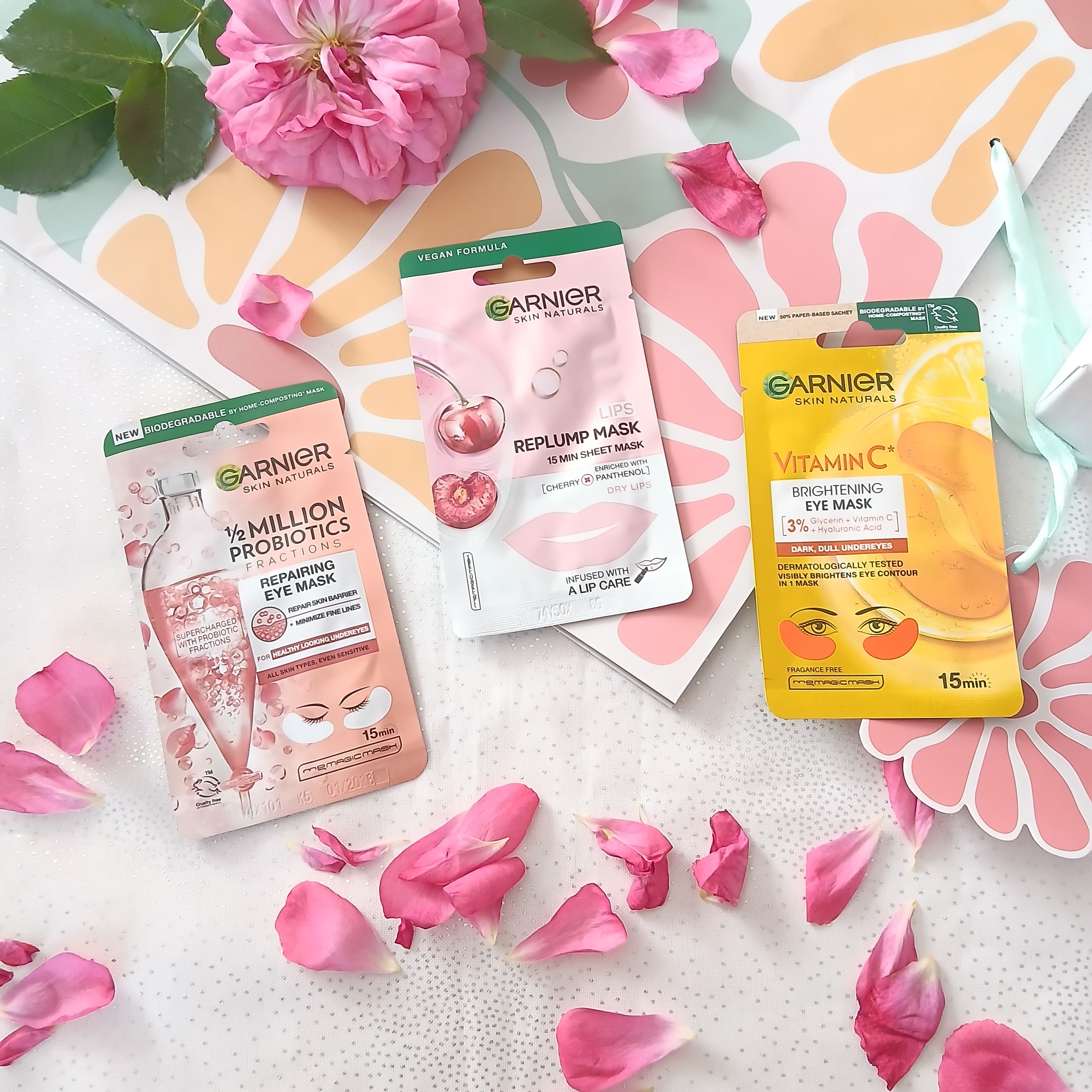 Akurat na babski wieczór świetne mogą okazać się maseczki z Garnier Skin Naturals, w tym 2 maseczki na okolice oczu oraz maseczka na usta: